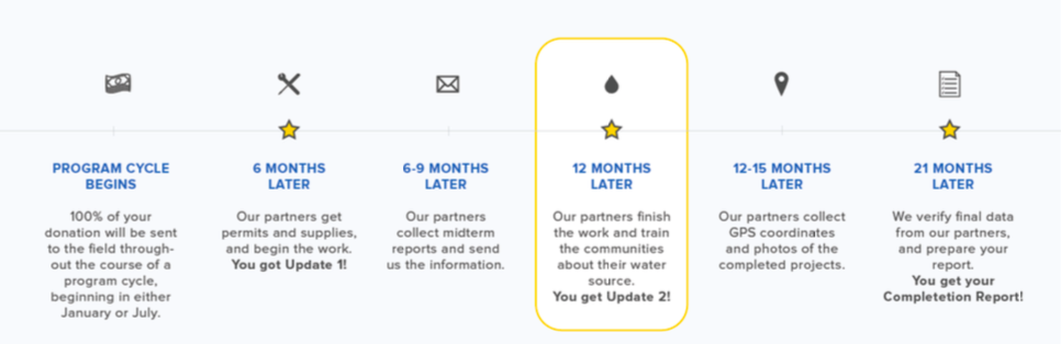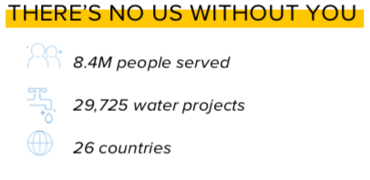 Since 2006, charity: water supporters have funded clean water projects for more than 8.4 million people around the world. 100% of your generosity makes an impact, and we'd love to partner with you again in the future to continue transforming lives. Thank you for your support.